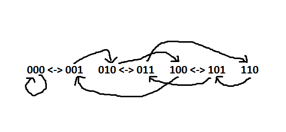 000 -> E(000) ->001 -> S(001)-> 010-> E(010) -> 011 -> S(011)-> 110