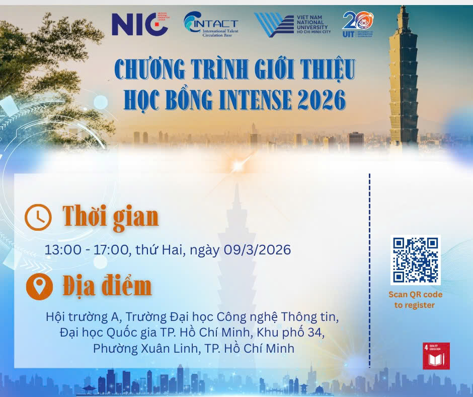 Nhằm mở rộng cơ hội học tập và phát triển nghề nghiệp trong lĩnh vực bán dẫn và công nghệ cao, Trường Đại học Công nghệ Thông tin phối hợp cùng Trung tâm Đổi mới sáng tạo Quốc gia (NIC) trân trọng mời các bạn tham dự: