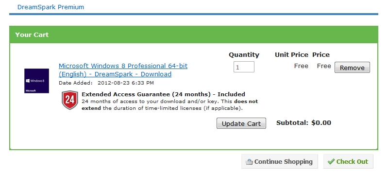 Theo lộ trình, Windows 8 Professional và Visual Studio 2012 sẽ sẵn sàng vào ngày 25 - 08 - 2012 cho các tài khoản DreamSpark và DreamSpark Premium